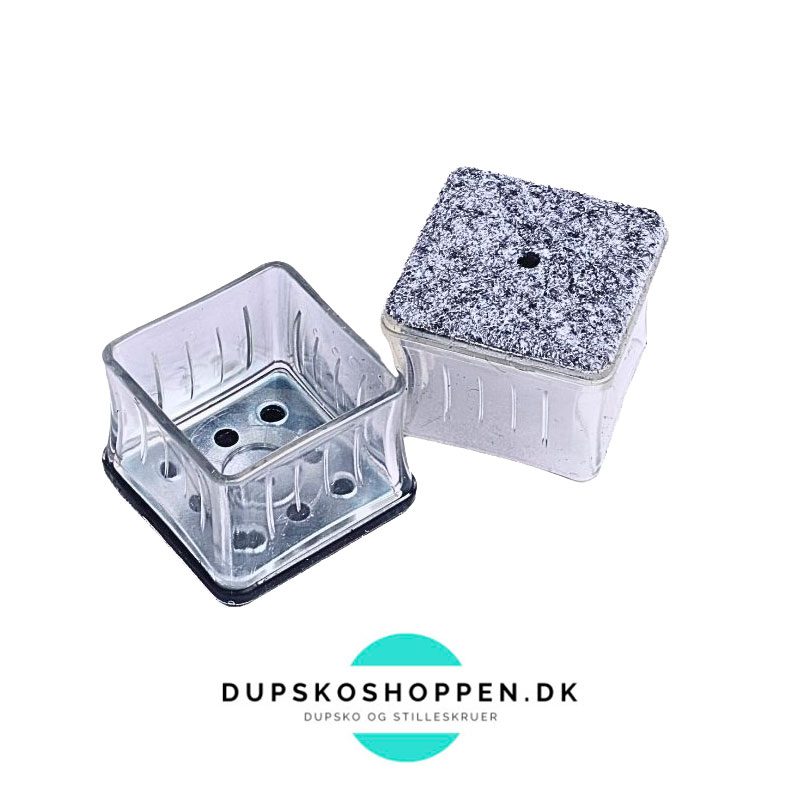 Dupsko Klar Silicone med filt, firkantede beskytter dine gulve og møbler. De er gennemsigtige, og hæfter godt på træ- eller stålben, og de er nemme at tage på og af. Filten er skånsom mod gulvet og støjdæmpende, når du flytter rundt på møblerne. Prisen er pr. stk. Vælg dupskoen efter det udvendige mål på benet